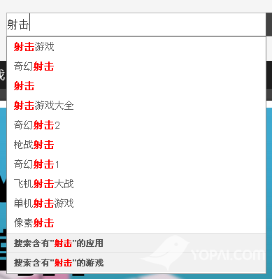 如用戶在搜索射擊這個關鍵詞時,可以根據下拉框來了解用戶經常搜的是哪類詞,用戶的搜索目的可能會發生變化,但搜索習慣一般不會輕易改變,下拉框中的關鍵詞是用戶習慣性跟隨相關搜索熱區。