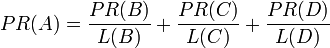 如果網(wǎng)頁T存在一個指向網(wǎng)頁A的連接,則表明T的所有者認為A比較重要,從而把T的一部分重要性得分賦予A。這個重要性得分值為:PR(T)/L(T)