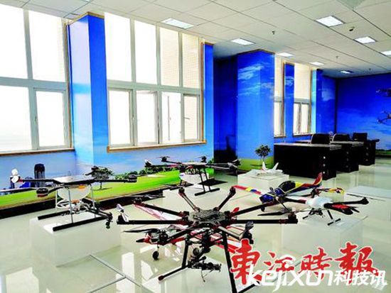在惠州市技師學(xué)院無(wú)人機(jī)展覽室里,幾部大小不一的無(wú)人機(jī)整齊地?cái)[放著,展覽室里還貼著藍(lán)天白云的壁紙。該校無(wú)人機(jī)學(xué)科帶頭人許勇告訴東時(shí)記者,這個(gè)展覽室是校企合作的成果。