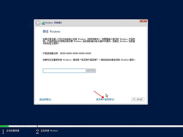 5、秘鑰可以先選擇“沒有產品秘鑰”選項,如下圖所示:
