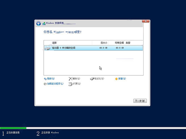 注意:由于小編這里采用虛擬機操作,劃分的虛擬硬盤沒有激活,所以只能夠選擇“自定義”,因為需要激活硬盤
