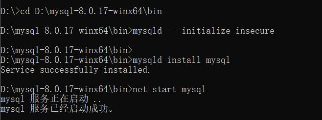 輸入 mysqld --initialize-insecure -----初始化數據庫,并設置默認root密碼為空 這時候那個data文件夾就會出來了