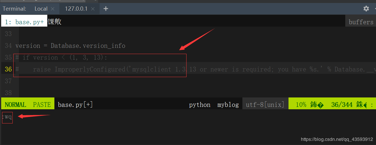 使用vim進(jìn)入/home/pyvip/.virtualenvs/myblog/lib/python3.6/site-packages/django/db/backends/mysql/operations.py中