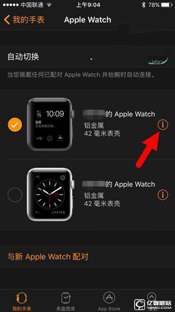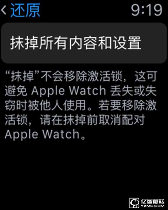 ① 先將你的Apple Watch與iPhone進(jìn)行解綁,解綁的方式有兩種,你可以在iPhone上的“Watch”配對(duì)應(yīng)用中點(diǎn)擊“我的手表”,然后點(diǎn)擊頂部的手表圖片,再點(diǎn)按你要解綁的Apple Watch后面的“i”圓圈,選擇“取消配對(duì)Apple Watch”即可;另外,你也可以直接在Apple Watch上進(jìn)行,依次選擇“設(shè)置——通用——還原——抹掉所有內(nèi)容和設(shè)置”即可,不過需要注意的是,直接在Apple Watch上還原之后,再次配對(duì)之前需要使用原配對(duì)Apple ID進(jìn)行激活;