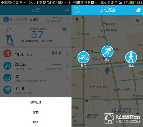在右上角的記錄里,有GPS運(yùn)動(dòng)記錄功能,使用時(shí)必須開啟手機(jī)GPS及網(wǎng)絡(luò),分為“騎行”“跑步”“健走”等項(xiàng)目,這個(gè)功能不依賴穿戴產(chǎn)品,記錄還是比較正確的。但GPS有時(shí)會(huì)突然斷掉,然后從新的起點(diǎn)重新開始,這可能是手機(jī)有時(shí)候檢測不到GPS信號的原因。點(diǎn)擊目標(biāo)設(shè)置,可以設(shè)置消耗的卡路里,可以選擇是保持健康還是減肥,設(shè)置目標(biāo)體重后,app會(huì)給出相關(guān)建議。