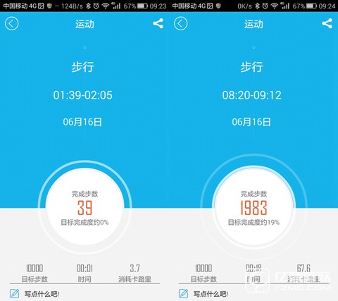 點(diǎn)擊運(yùn)動(dòng),能看到每天的步數(shù)及消耗的卡路里,還有距離、時(shí)長、速度等,并可生成柱狀圖,以及減肥的目標(biāo)度。這里說一下記步功能,佩戴了幾天,自動(dòng)監(jiān)測記步的功能很強(qiáng)大,就算是運(yùn)動(dòng)時(shí)與手機(jī)連接斷開也沒事,下一次連接時(shí)會(huì)自動(dòng)同步數(shù)據(jù)。