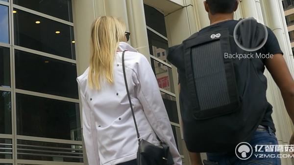 夾克后面內置了幾個按扣,可以連接充電板。另外,充電板還可以通過卡夾安裝到背包上。