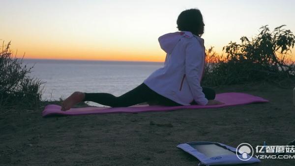 或者,就像這位在戶外做瑜伽的美女一樣,你可以隨時把電池板拆卸下來放在一邊。