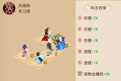 風(fēng)揚(yáng)陣(兩速三傷害)依靠四號(hào)位、五號(hào)位提速,先手克制敵方關(guān)鍵單位,保證一號(hào)、二號(hào)、三號(hào)位的后續(xù)輸出爆發(fā)。一但先手克制成功,將能夠奠定整場(chǎng)戰(zhàn)斗的優(yōu)勢(shì),對(duì)敵方進(jìn)行窮追猛打。