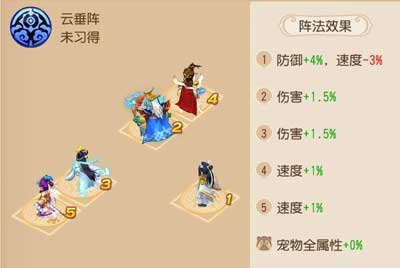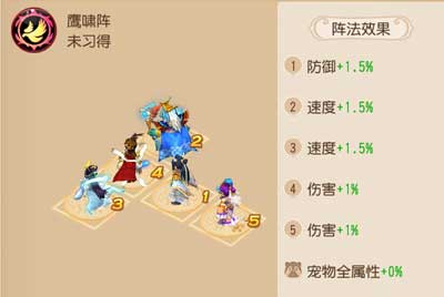 鷹嘯陣(1防2速2傷):效果與云垂陣相似,比較綜合的陣法,適合輔助或治療職業(yè)。