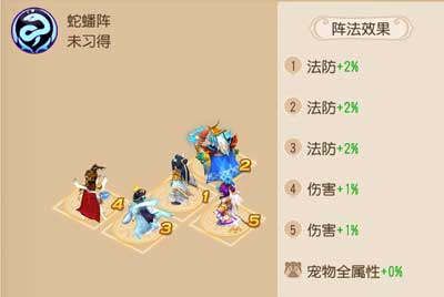 蛇蟠陣(3法防2傷):針對(duì)法傷隊(duì)伍的陣法,適合在PK或一些boss戰(zhàn)中使用。