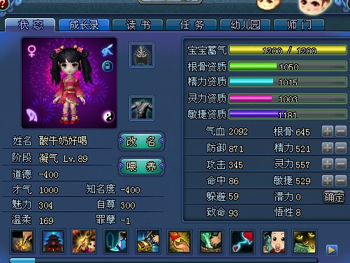 首先作為寶寶氣場最重要同時也是最花錢的部分——資質,它是決定寶寶氣場的基礎,第一步先從這個下手
