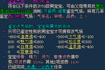 有些氣場在要求各項數值和資質的同時也會要求寶寶完成一個奇遇任務