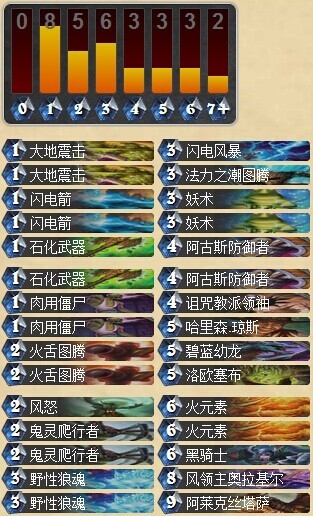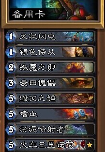 6. 閃電風(fēng)暴去掉一個 :這玩意在亡語世界太坑了,一張就行。倆張 A了也不賺,寧愿帶個叉閃,也不帶倆這玩意,卡手、卡費用。