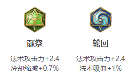 藍色輪回提升嫦娥的法術傷害和百分之十的法術吸血。貪婪增加嫦娥的百分之16的吸血,但是不是很建議帶貪婪,貪婪嫦娥打野的時候用比較好,不是打野百分之十的吸血就好了。