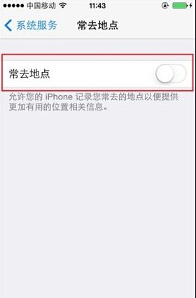 2、關閉“常去地點”的定位服務再回到屏幕上方,把“常去地點”功能關閉,回到灰色的狀態。