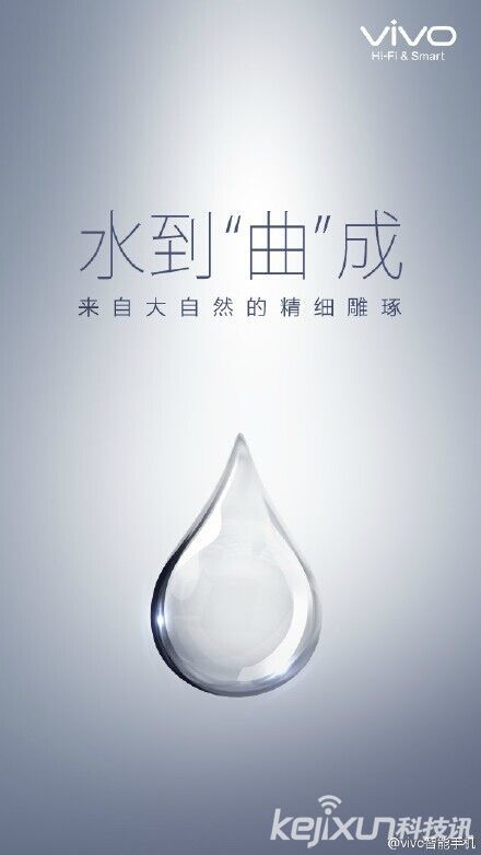 其中第一張水滴形象,文案“水到‘曲’成,來自大自然的精細雕琢”,【曲】,自然不用說,即是vivo一直以來堅持,并牢牢占領著制高點的Hi-Fi音質,而【水】和【來自大自然的精細雕琢】,筆者猜想極有可能是暗示了該機的設計理念或者靈感,來自于大自然的水。