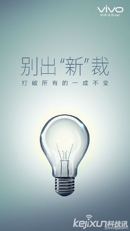 第三張燈泡形象,文案“別出‘新’裁,打破所有的一成不變”,則直接的表示了該機將【打破所有的一成不變】,有著全【新】的設計或者功能,而聯系前面的文案,小編認為在外觀、設計和材質等方面推陳出新的幾率更大一些。而且vivo經典的三段式設計已經保持了許多年,這也暗示了文案中的【打破所有】,即該機將不會采用經典的三段式設計。