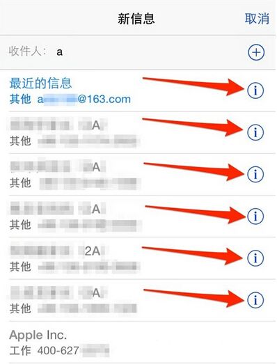3、點擊其中那些聯系方式右側有“i”(info)的按鈕,進入該聯系方式詳情頁;