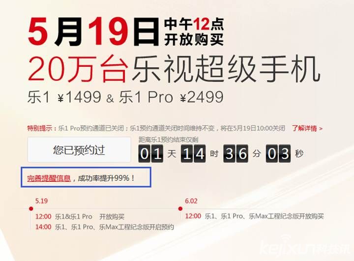 據(jù)了解,樂視超級(jí)手機(jī)1 Pro預(yù)約通道已于5月16日下午15:30分關(guān)閉,樂視超級(jí)手機(jī)1預(yù)約通道將在5月19日當(dāng)日上午10:00關(guān)閉。