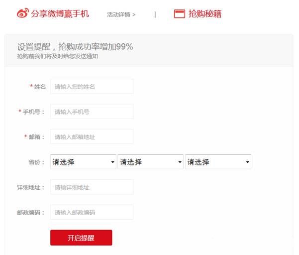 1. 在5月19日上午10點(diǎn)之前進(jìn)入活動(dòng)頁(yè)面,點(diǎn)擊“完善提醒信息”盡快完善您的有效聯(lián)系方式、收貨地址并綁定快捷支付(即搶購(gòu)秘籍);
