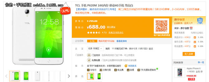 599元價位可能你會選擇紅米,但是市面上還有不少599元高性價比的手機,何必要選紅米呢?TCL P620M就是其中一款,TCL P620M搭載了一顆MT6732 64位四核處理器,配備2G RAM+16GB ROM,并采用了一塊5.0英寸720P屏幕,TCL ono P620M定價僅需599元,目前蘇寧易購每逢周二和周五10點都有現(xiàn)貨原價599元發(fā)售,感興趣的朋友趕緊前往官方商城下單吧。