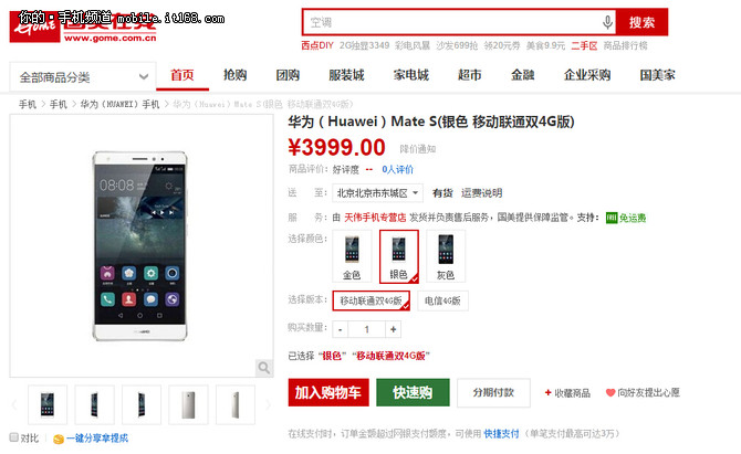 華為Mate S現(xiàn)貨直降200僅3999元 搶啥搶