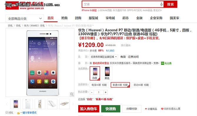 配置不比P8青春版差 華為P7僅1209元