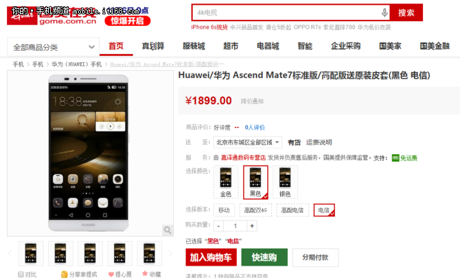 直達(dá)鏈接:電信/移動(dòng)標(biāo)配版 華為Mate7僅1899元 ,,