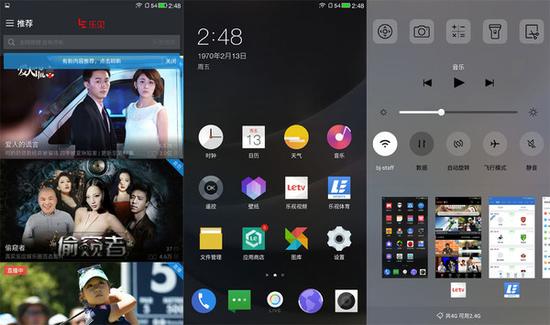 在桌面組合當中,EUI以功能劃分,而不是傳統廠商那種沒有明確界限的。EUI擁有應用桌面、LIVE桌面與樂見桌面,而其他品牌的手機,通常只存在應用桌面這部分。樂見桌面提供多種視頻內容,是樂視影視服務在手機當中的一大接入口,用戶向左滑動便可進入該界面。