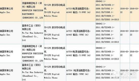 除了在工信部入網(wǎng)之外,iPhone SE也獲得了國(guó)家質(zhì)量中心(3C)的認(rèn)證,顯示A1723和A1724兩款機(jī)型都適配A1443充電器。值得一提的是,3C認(rèn)證信息還顯示,國(guó)行iPhone SE分別為鴻富錦精密電子有限公司和富泰華工業(yè)有限公司生產(chǎn)。