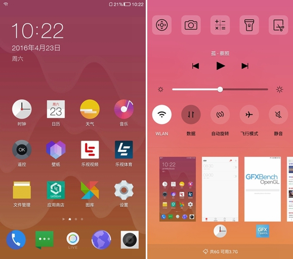關(guān)于系統(tǒng)這方面其實大家可以去去看本站的【樂視手機2評測】一文,這款樂Max 2均是運行安卓6.0定制的EUI 5.6用戶界面,在這里關(guān)于系統(tǒng)評測筆者僅簡單的介紹一下,EUI用戶界面最大的特色就是擁有三種系統(tǒng)桌面,主要依托了樂視強大的視頻源,這也是樂視對外宣稱的一種生態(tài)模式。
