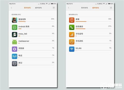 用小米Max玩網絡游戲,你會發現排兵布陣變得更加輕松,打怪升級快了許多。本輪網絡游戲半小時,從截圖可以看出,軟件耗電以《皇室戰爭》為主耗電占總耗電的31%。硬件以屏幕耗電為主耗電占總耗電的41%。半小時僅耗電4%,超乎我們想象,真的像“開掛”一樣。