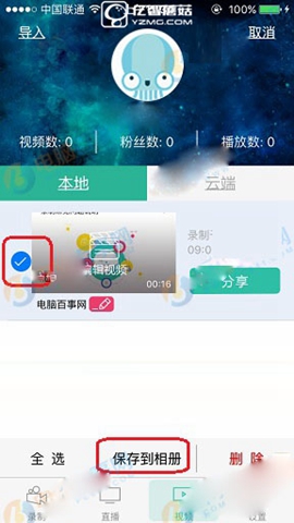 2.勾選你想要保存到相冊的視頻,點擊“保存到相冊”即可成功保存到手機相冊,如圖: