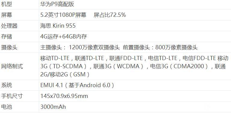 ▲硬件方面,華為P9搭載的是麒麟955CPU,采用ARM4*CortexA722.5GHz+4*CortexA531.8GHz+微智核I5,其實麒麟955相當于950的超頻版,GPU為Mali-T880,配置性能上已經算得上是旗艦級了。