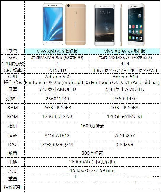 兩部機器外觀、屏幕、攝像頭、電池容量都是一致的,主要變化是旗艦版搭載了驍龍820并大幅升級了音頻芯片,而且它還是國內(nèi)首部搭載6GB內(nèi)存+128GB存儲的手機。Xplay5旗艦版除了攝像頭,所有硬件配置都已經(jīng)是現(xiàn)時最頂尖的。