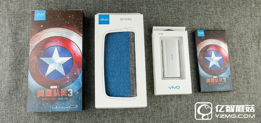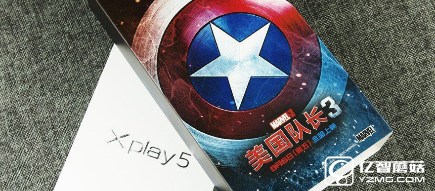 我們的測試機是美國隊長Xplay5旗艦版。機器的包裝相當酷炫,附贈了美隊的T恤和手機殼、配件收納包和5000mAh的移動電源。