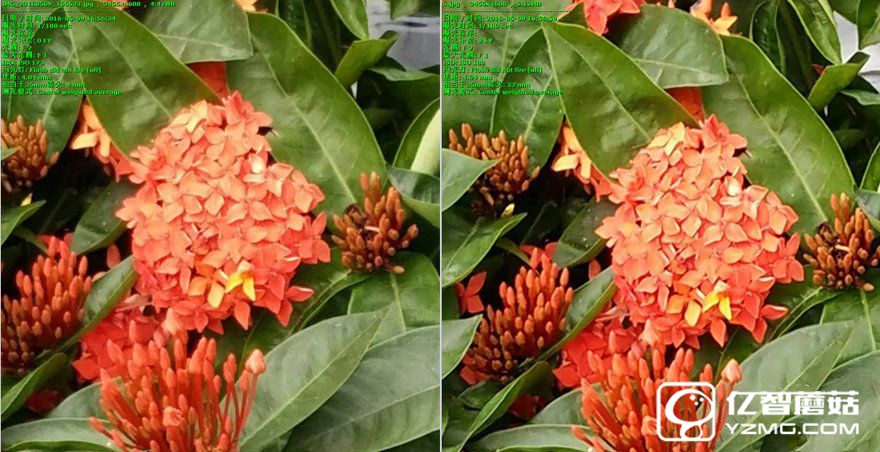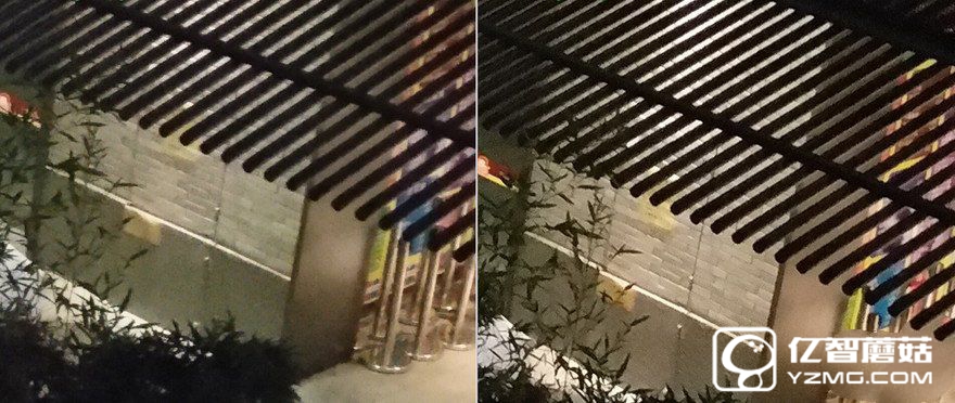 在弱光場景,我們可以發現兩者樣張的ISO、快門都非常接近,但旗艦版樣張的數據量總是大一些,反映在樣張上的是更好的噪點涂抹和銳度表現,畫面純凈度更高,彩噪更少。