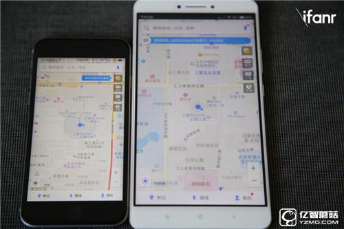 同樣的高德地圖,小米Max能顯示的區域比旁邊的iPhone6s多出不少。把小米Max當做車載導航儀使用,是個很好的選擇。同時,MIUI中內置的“巨無霸”字體,能夠使得小米Max的顯示內容,看上去更大,適合老人使用點按。