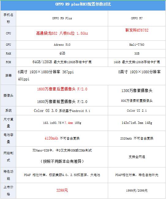 先來看看OPPO R9 Plus和R7配置參數(shù)對(duì)比,具體如下所示: