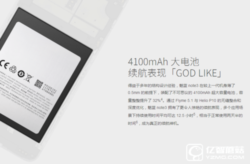 具體的,魅藍 note3上搭載了魅族手機史上最大容量的電池,根據官方介紹可以使用2.5天,雖然這個數據比較理想化,但是依然不能掩蓋魅藍 note3是史上續航最佳的魅族手機的事實。此外,該機所搭載的聯發科Helio P10處理器是專門針對中低端機型推出的,在功耗表現上比較優秀,加上Flyme 5.1的優化,對魅藍 note3的續航表現也起到了添磚加瓦的作用。