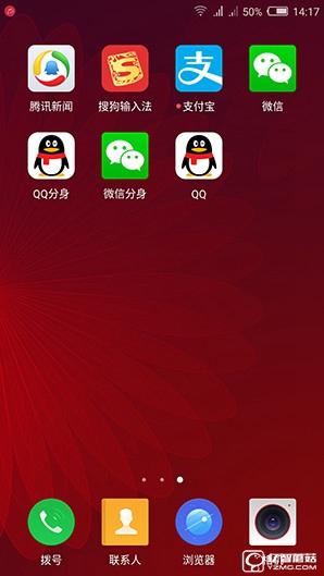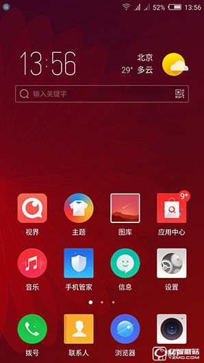 軟件方面,“小屏手機”——nubia Z11 mini搭載基于Android 5.1.1深度定制的nubia UI 3.9.6。對于nubia UI,“牛仔”必然十分熟悉。nubia UI 3.9.6則是最新的nubia UI版本。相比前作,它采用全新的界面設計,加入了全新主題,對桌面圖標進行了重繪,樣式依然以圓角矩形和圓形為主,如圖所示。