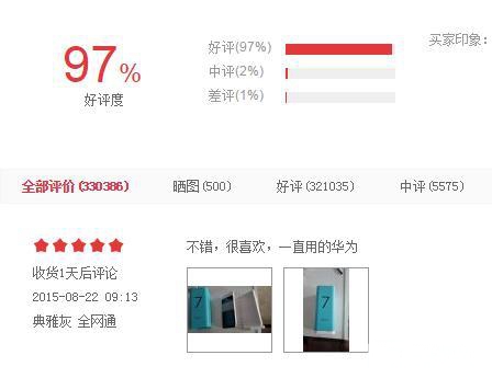 查看了京東的榮耀7的好評率,97.16%多,共32萬好評!