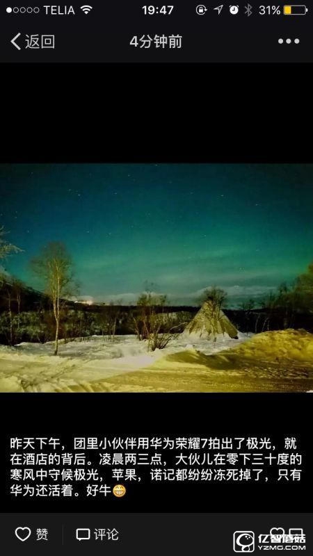 還記得嗎?在今年初全國罕見的極冷天氣中,蘋果手機被凍死機,甚至包括諾基亞。但榮耀的手機卻依然工作,比如榮耀7甚至在北極零下30度都正常工作。如下是一位在北極旅游的網友的經歷: