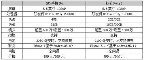 對比發(fā)現(xiàn),在硬件上,360手機(jī)N4無論是十核處理器的引入,還是4GB RAM+32GB ROM,不僅強(qiáng)力碾壓魅藍(lán)Note3,甚至在整個(gè)千元機(jī)市場也是獨(dú)領(lǐng)風(fēng)騷。尤其是4GB內(nèi)存在千元機(jī)中的引入,再次打破了千元機(jī)的配置水準(zhǔn)。