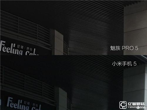 在明暗共存的場(chǎng)景下,魅族暗部的表現(xiàn)也比小米5 好些,天花板上的條紋亮度以及銳度都高于小米5。