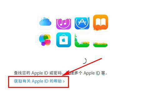 2)找到【Apple ID】后點擊【獲取有關(guān)Apple ID的幫助】。(如下圖)