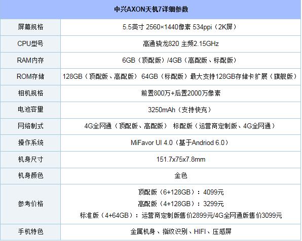 先來(lái)看看中興AXON天機(jī)7詳細(xì)配置,具體如下所示: