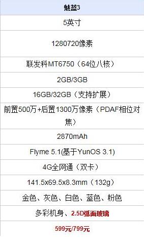 魅藍3配置參數: