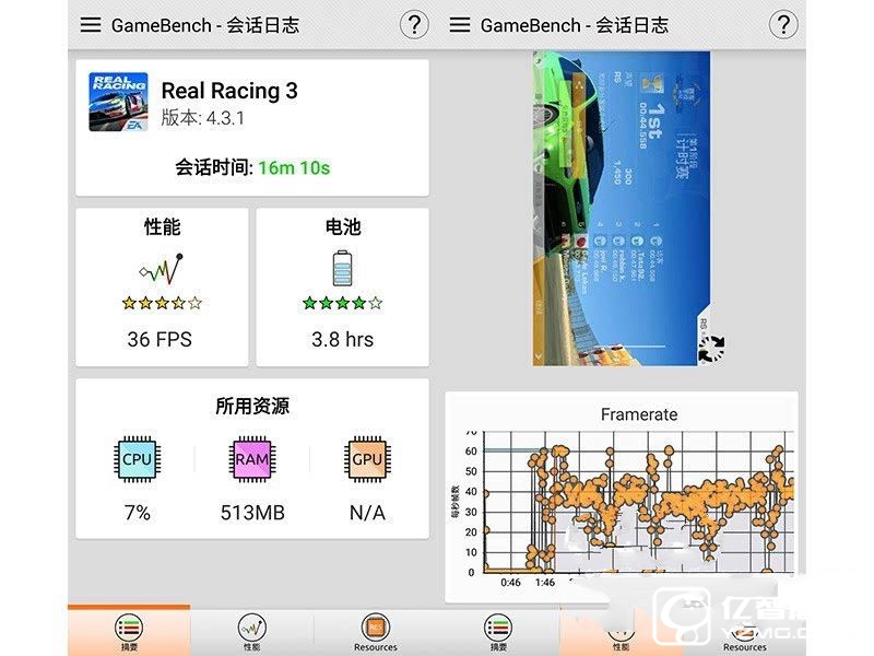 游戲選取賽車游戲Real Racing3。 選擇Gamebench的原因是由于該軟件的防作弊機制,可以非入侵式的檢測幀率、電池消耗情況等,然后將這些數據綜合,給出最終評分,這與普通的跑分應用不同,普通的跑分應用會因為廠商對某些機型做出修改后得出超出實際性能的分數。簡單來說,Gamebench能夠更客觀的反映出產品實際性能。